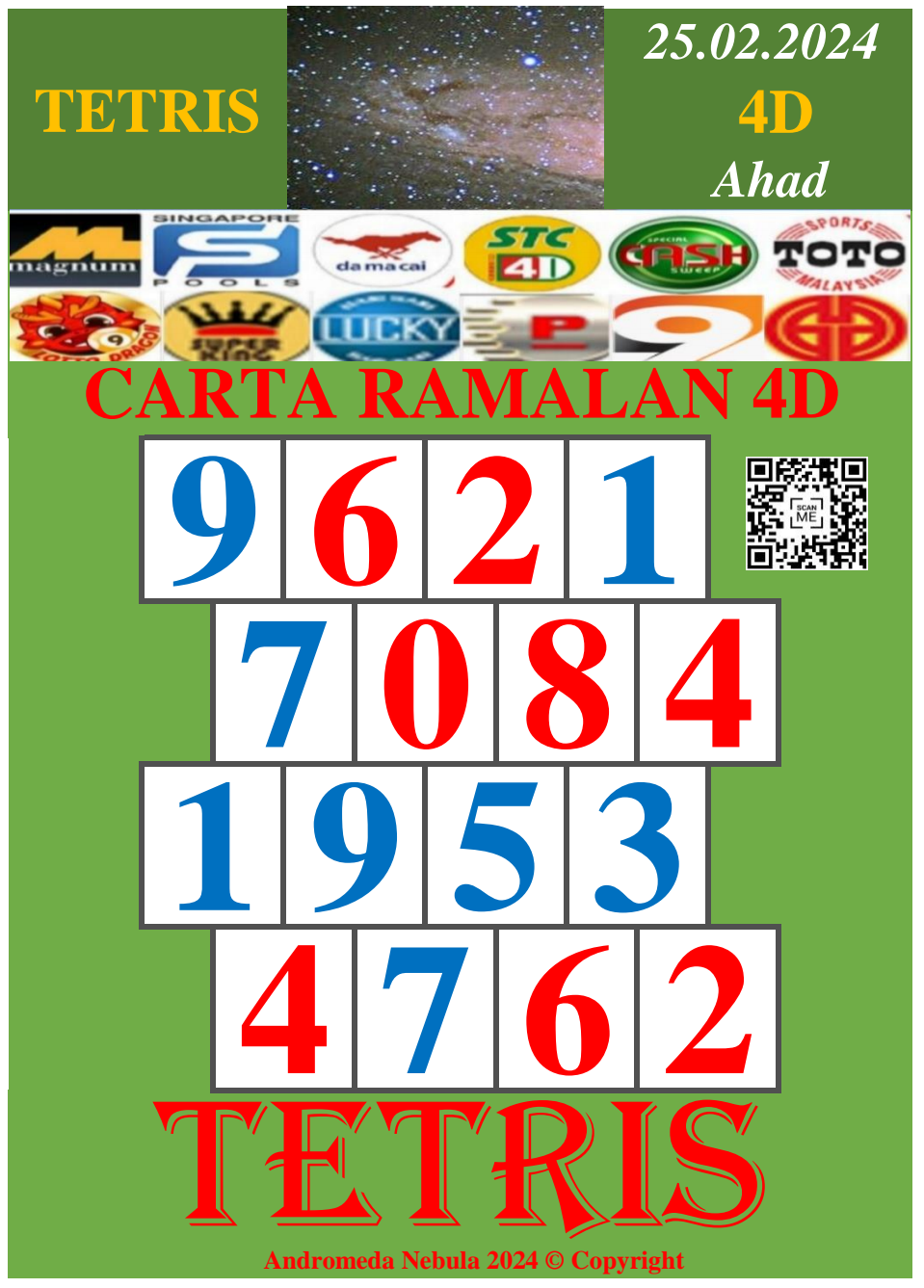 Carta Ramalan 4D Pro Tetris 25 Feb 2024 (Ahad) Grand Dragon | Perdana | 9 Lotto | Lucky Hari - Hari | Super King | Lotto Macao