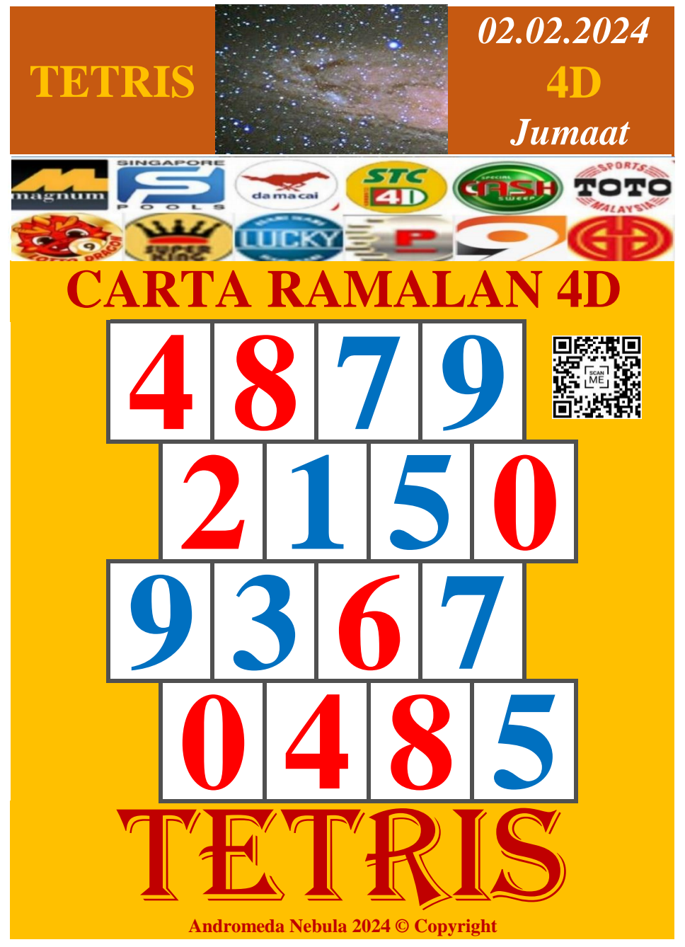 Carta Ramalan 4D Pro Tetris 02 Feb 2024 (Jumaat) Grand Dragon | Perdana | 9 Lotto | Lucky Hari - Hari | Super King | Lotto Macao