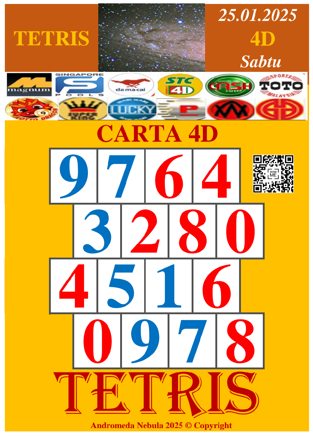 Carta Tetris 25 Jan 2025 (Sabtu) Grand Dragon | Perdana | 9 Lotto | Lucky Hari - Hari | Super King | Lotto Macao